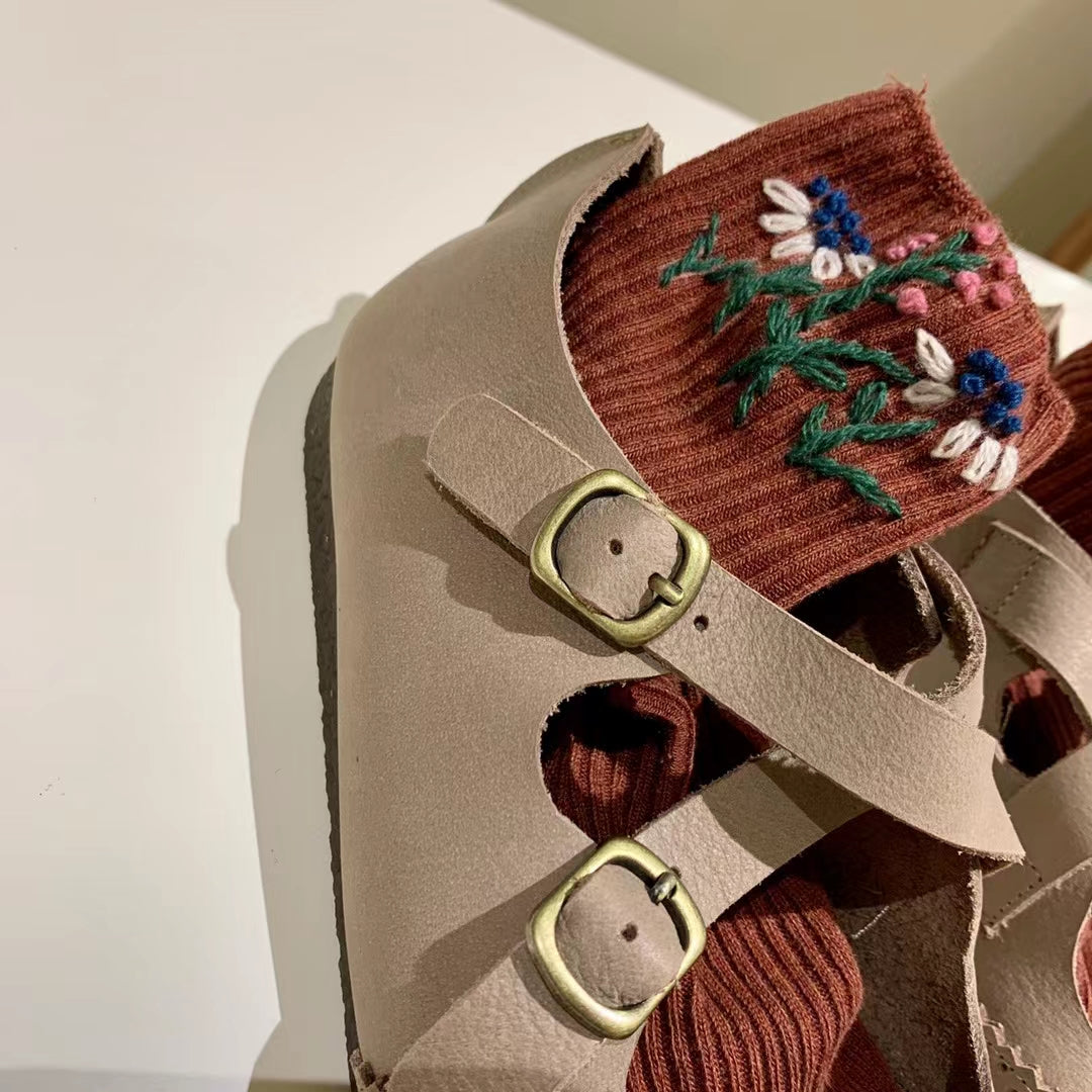 Floral Hand Embroidered Wool Socks